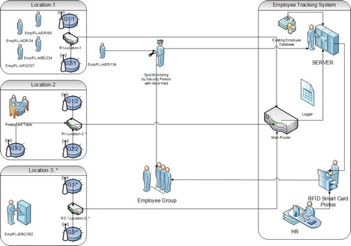- Smart Graphical User Interface to represent real-time employee tracking information location wise.
