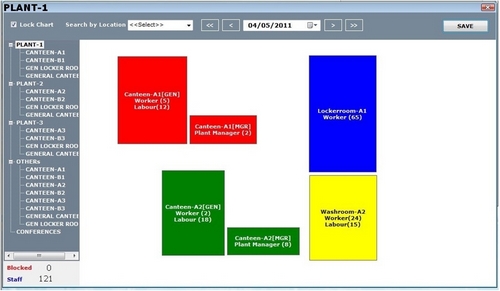 - System should display location wise real-time graphical analysis, how many employees are present in specific RFID Enable region or location by designation.